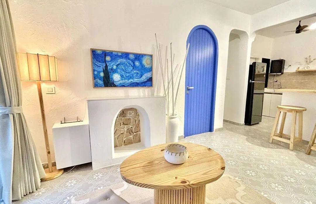 Offering an outdoor swimming pool, the 1-room Chic Mediterranean Retreat In Candolim Sleeps 4 Calangute apartment is situated approximately a 10-minute ride from the coastal fortress "Sinquerim Fort". 3.1 km from the apartment you will find the well-preserved seventeenth-century Portuguese Fort Aguada.